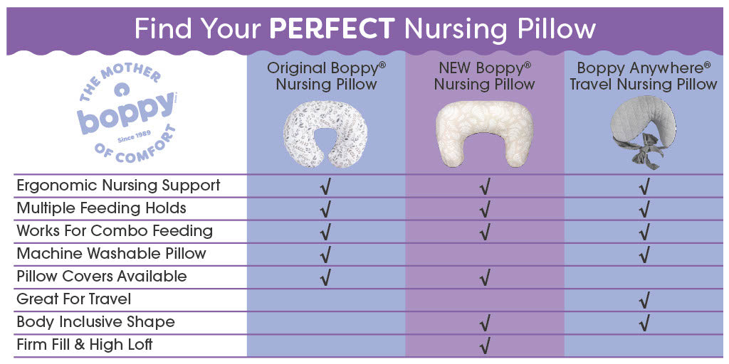 Boppy offers a variety of nursing pillow shapes and sizes. Comparing Boppy Nursing Pillows can help ensure that you pick the perfect pillow for yourself, your baby, or your loved one.