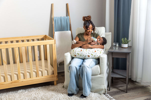 Using a nursing pillow for feeding helps with arm and back fatigue, as children’s heads often have to be held at a slightly higher angle.Whether you exclusively breastfeed, bottle feed, or combo feed between both options, a nursing pillow can add support and comfort.