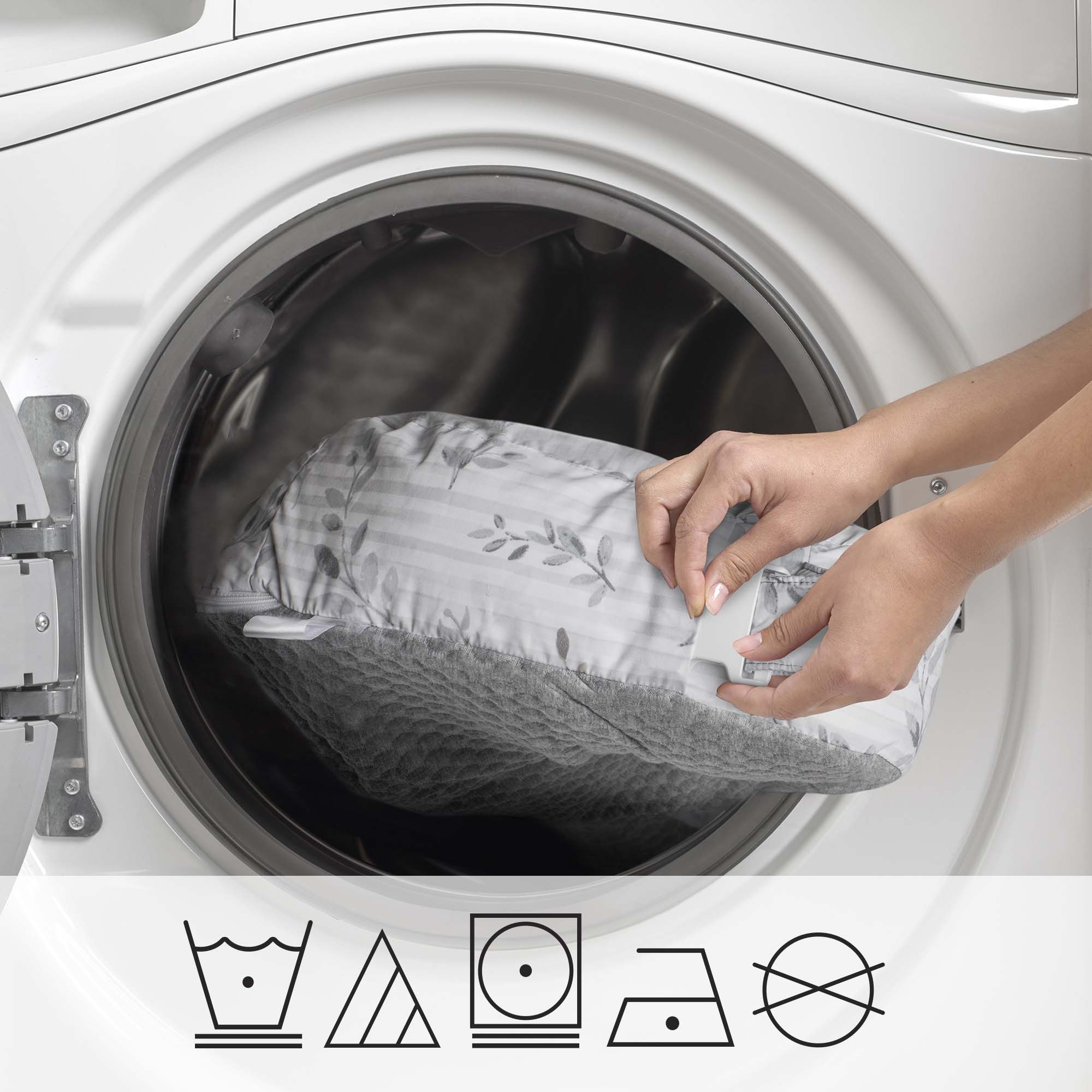 Pillow: Front load washing machines is recommended.
