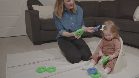 Give your little one the best seat in the house with the new Boppy Proper Posture Floor & Booster Seat. This innovative baby floor seat is designed with an ergonomic shape and angles to help your baby learn to sit with better posture. Developed in collaboration with a leading pediatric physical therapist, and proudly JPMA Certified, this baby floor seat meets the highest standards for safety, performance, and functionality through rigorous independent laboratory testing. Our baby seat support grows with your kiddo and transitions to two stages of support: Stage 1 acts as a baby seat with the included insert providing a slight anterior pelvic tilt (4+ months) and Stage 2 without the insert, for a roomier seat while maintaining shoulder support and ideal angles for toddlers (up to 36 months). The baby booster seat with tray supports your baby through the hips, and up to the shoulder blades with a high backrest. This versatile baby seat with tray from Boppy easily converts from a floor seat to a booster seat using integrated, stow-away straps. The removable T-bar provides instant restraint, and the 3-point harness ensures your little one stays secure. The wide base adds extra stability, making it a safe spot for your baby to observe and join in all the household shenanigans. With its chic Japandi-inspired design, this baby seat fits right in with your home décor while providing comfort and function. From mealtime to playtime, this baby booster seat checks all the boxes! Plus, it's easy to clean – the dishwasher-safe tray is perfect for messy meals or scribbling masterpieces, while the chair and insert can be wiped clean. The lightweight, portable design has a built-in handle, so it can follow your explorer from room to room or an adventure away from home